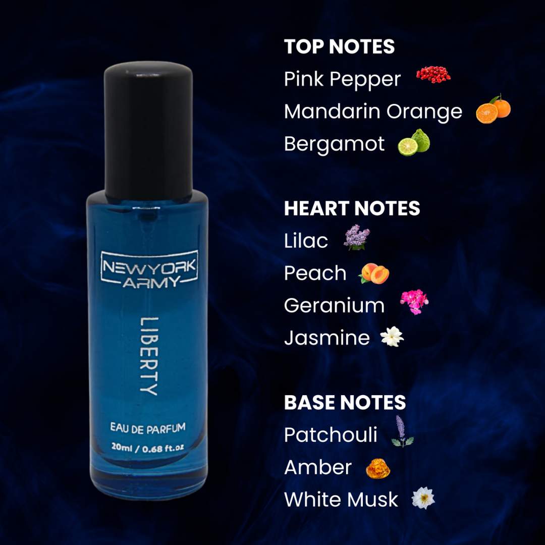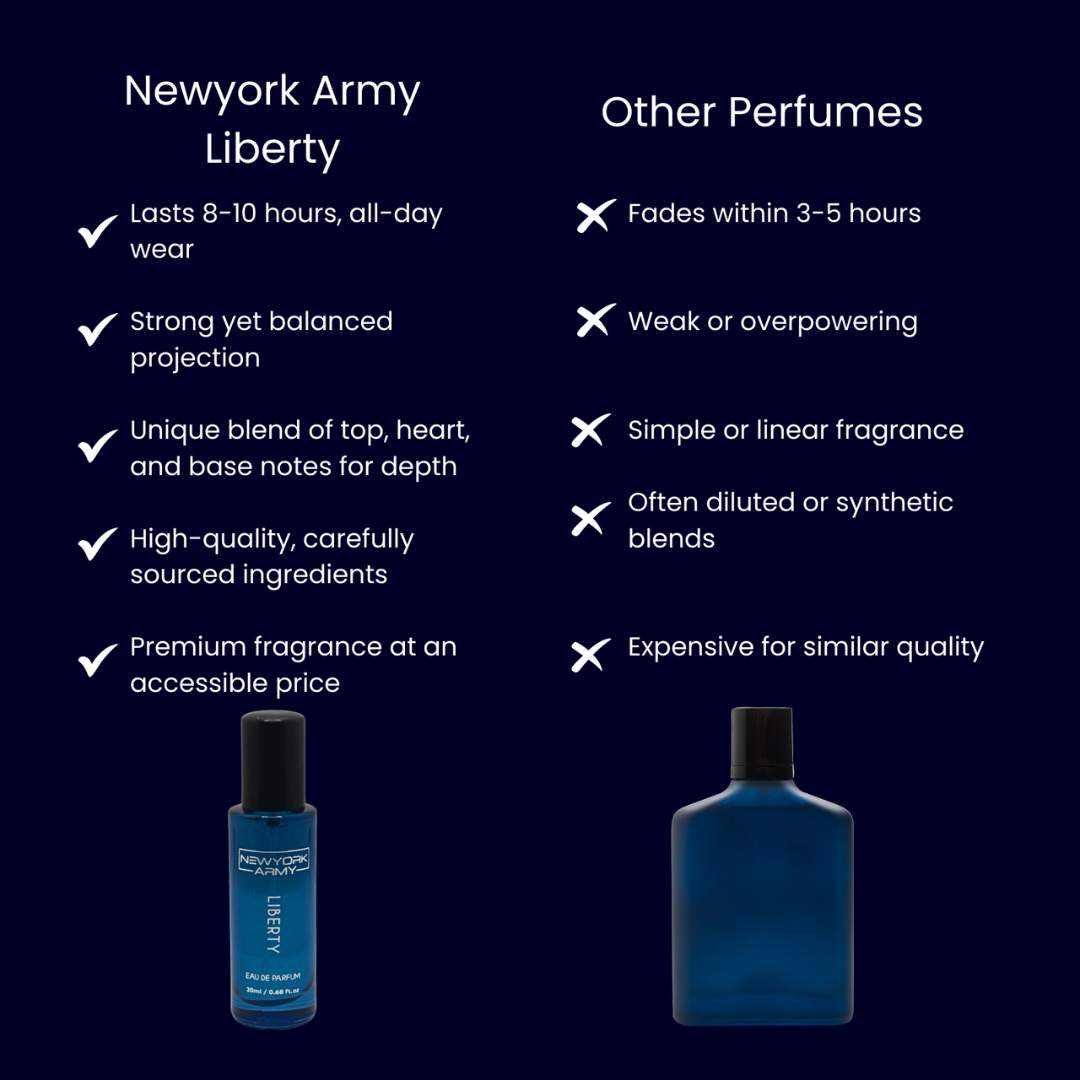 - New York Army Liberty Fresh Perfume captures the spirit of freedom with its bold and refreshing scent, perfect for those who live life on their own terms.